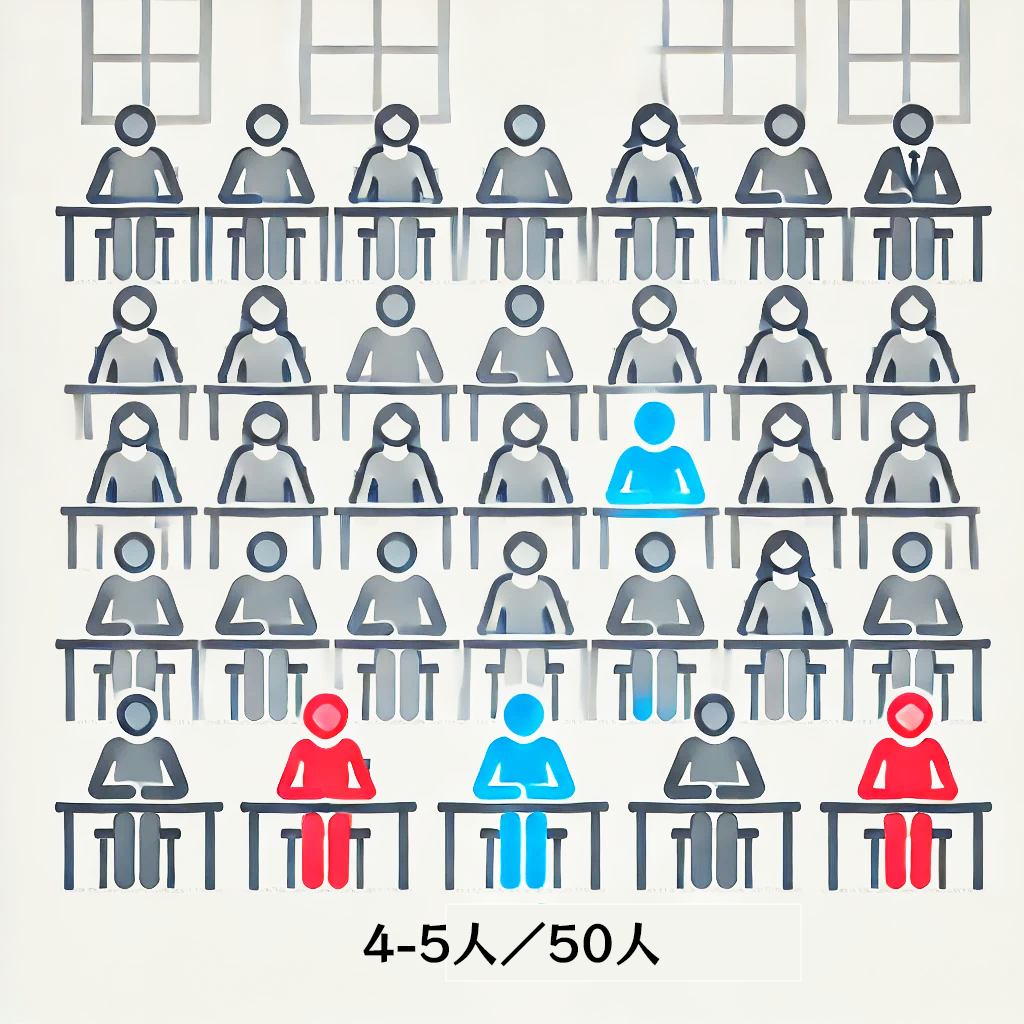 おおよその割合としては、1クラス50人だとして4~5人は 存在することになります。